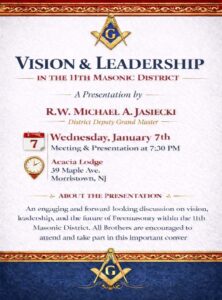 Acacia Lodge No. 20 is one of five Freemasonic Lodges that make up the 11th District of the most Ancient and Honorable Society of Free and Accepted Masons of the Grand Lodge of New Jersey. We are based in Mine Hill, NJ.