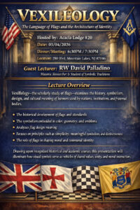 Regular Communication. Guest Speaker: RW David Palladino on, “Vexillology.”
