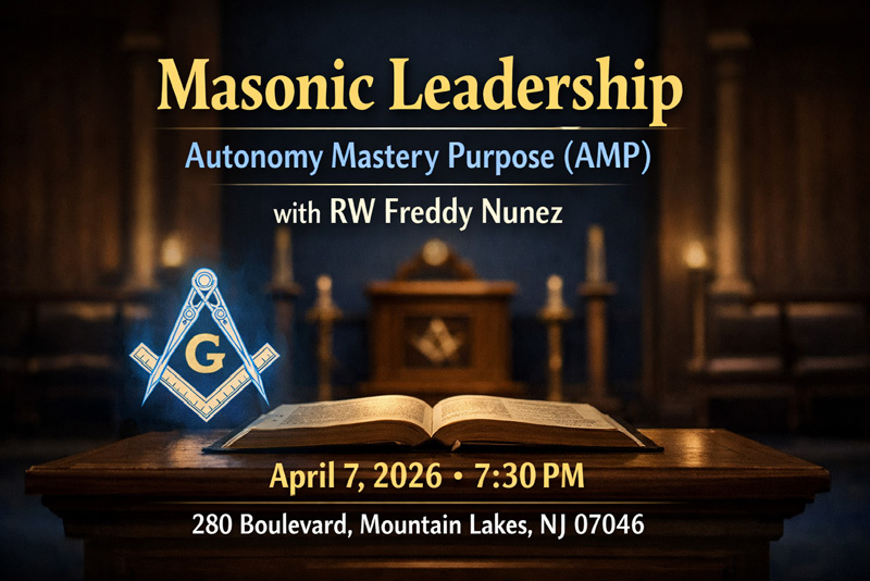 Regular Communication. Speaker: RW Freddy Nunez on, “Masonic Leadership with Autonomy Mastery Purpose (AMP).”